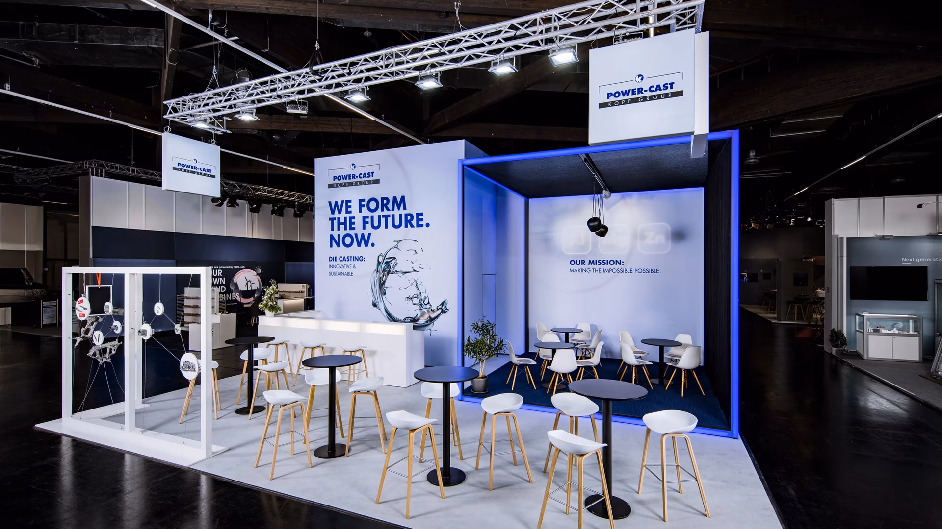 Von Profilen und Rahmen, über Bodensysteme bis hin zu leuchtenden Akzenten – Messestände lassen sich in unzähligen Varianten realisieren. Ob kompakt oder im XXL-Format, schlicht oder spektakulär, die Möglichkeiten reichen vom einfachen Display bis zur mehrgeschossigen Architektur. Immer mit dem Ziel, Marken sichtbar zu machen und Räume für Begegnungen zu schaffen.