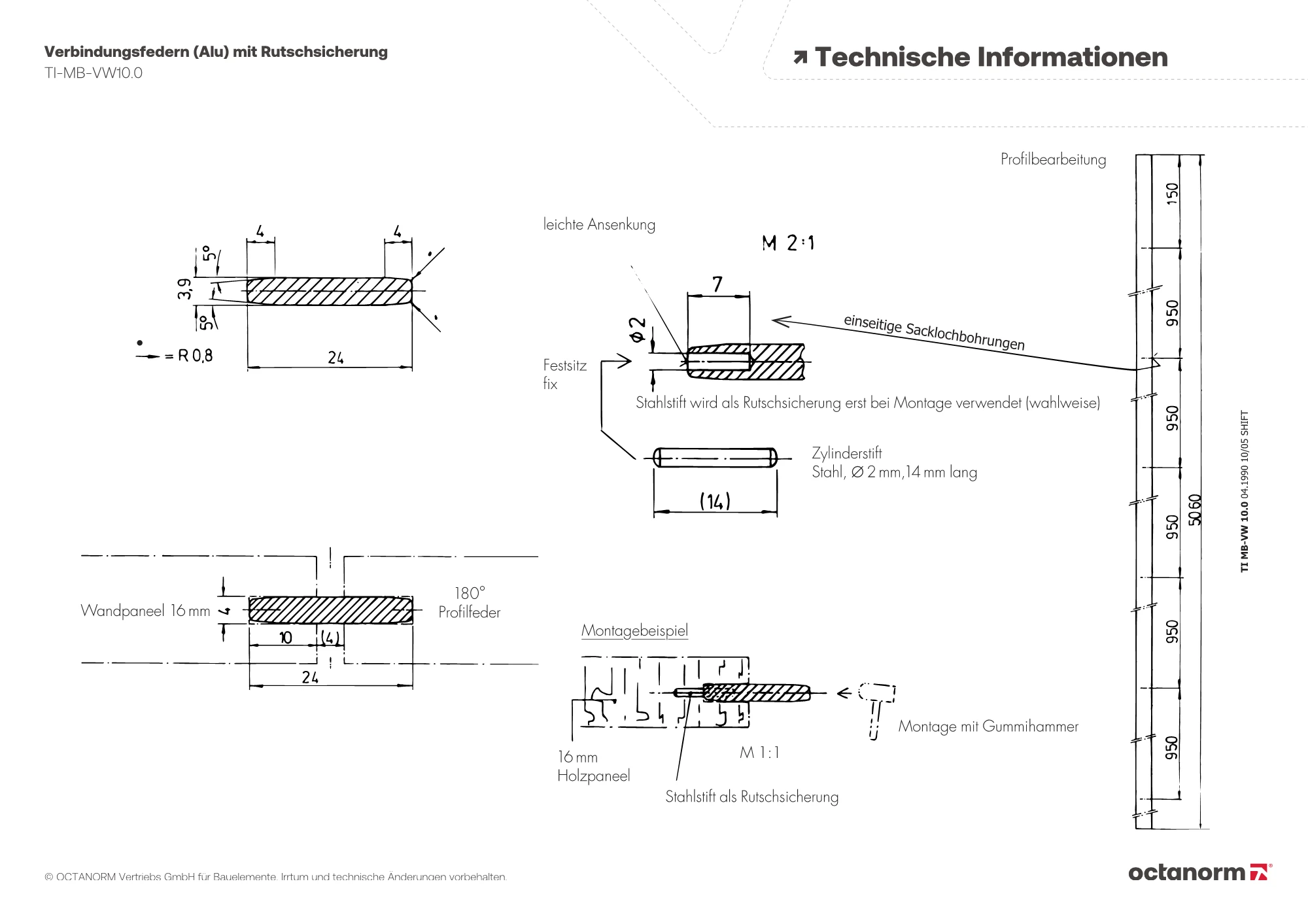 eine Stirnseite mit 6 × Lochung (Ø 2 mm)