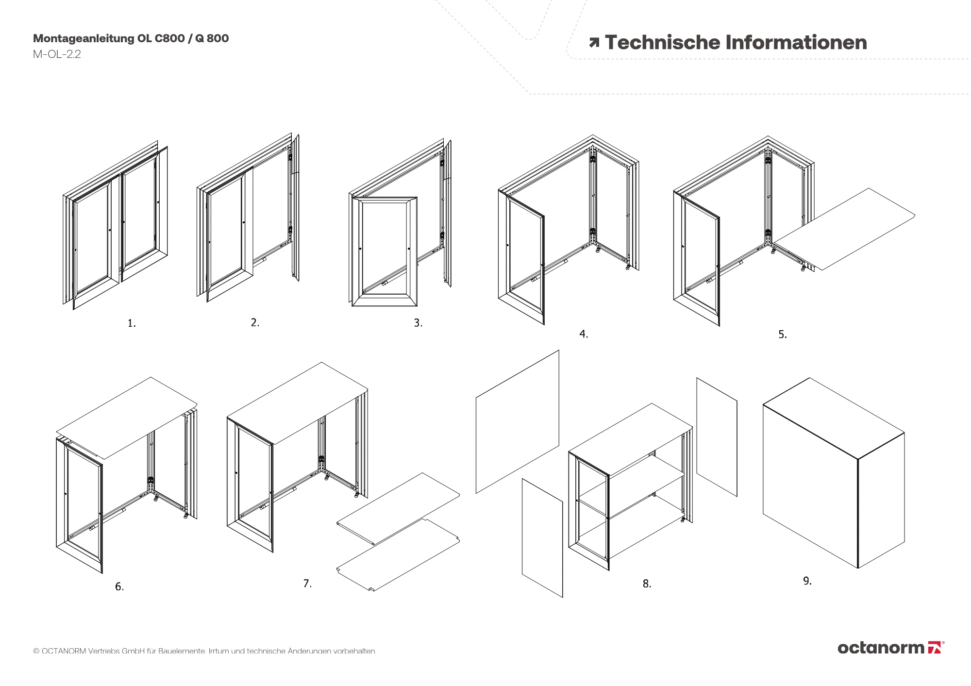 inkl. 2 × Fachboden, Front aus octalumina Leuchtrahmen (einseitig), 6500 K, Stoffseiten unbeleuchtet, LEDs und Netzteil montiert, Kabellänge 2 m, platzsparend zusammenklappbar, einfache Montage,Rahmenaußenmaß Front: B 900 × H 900 mm, Rahmenaußenmaß Seite: B 440 × H 900 mm