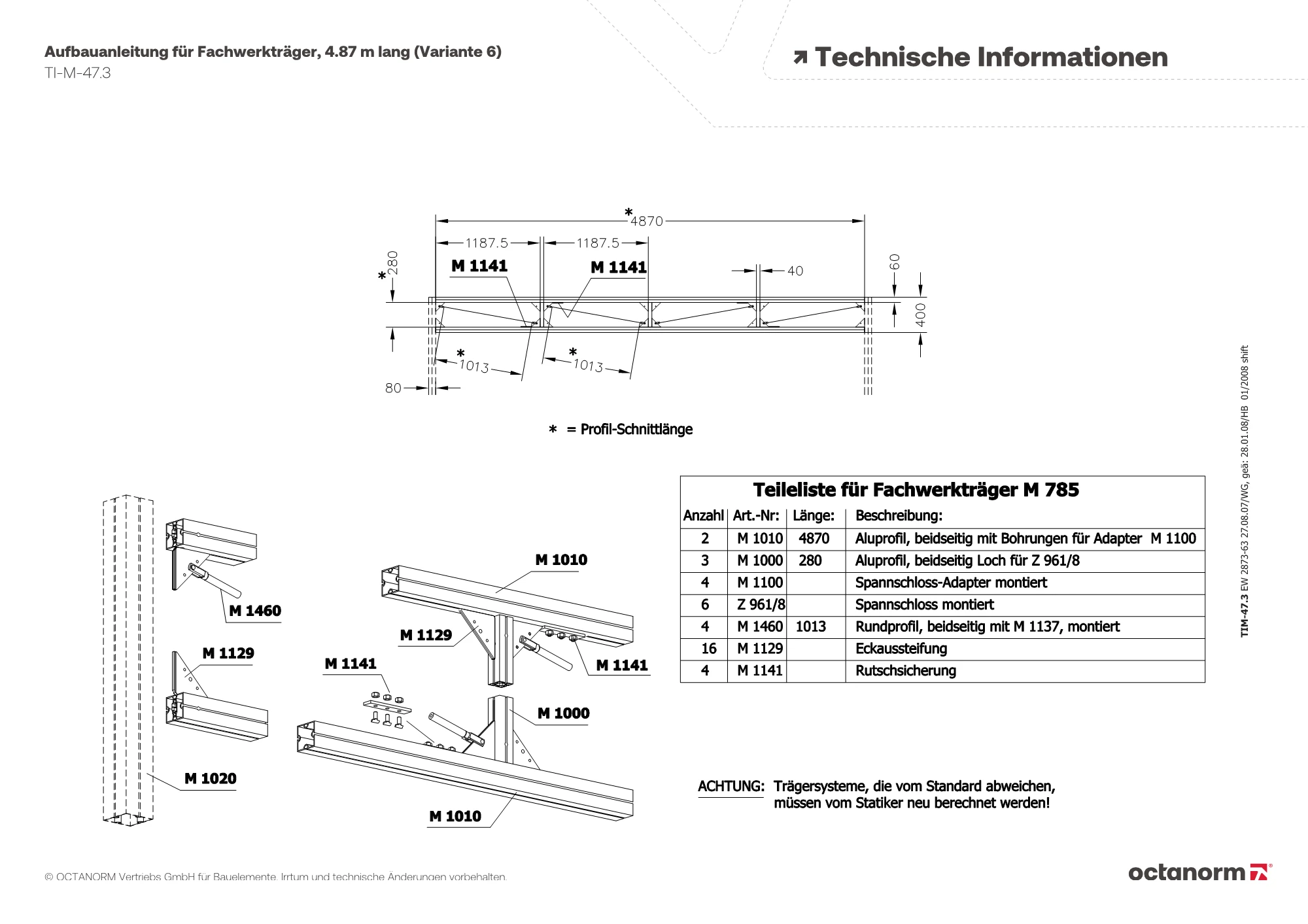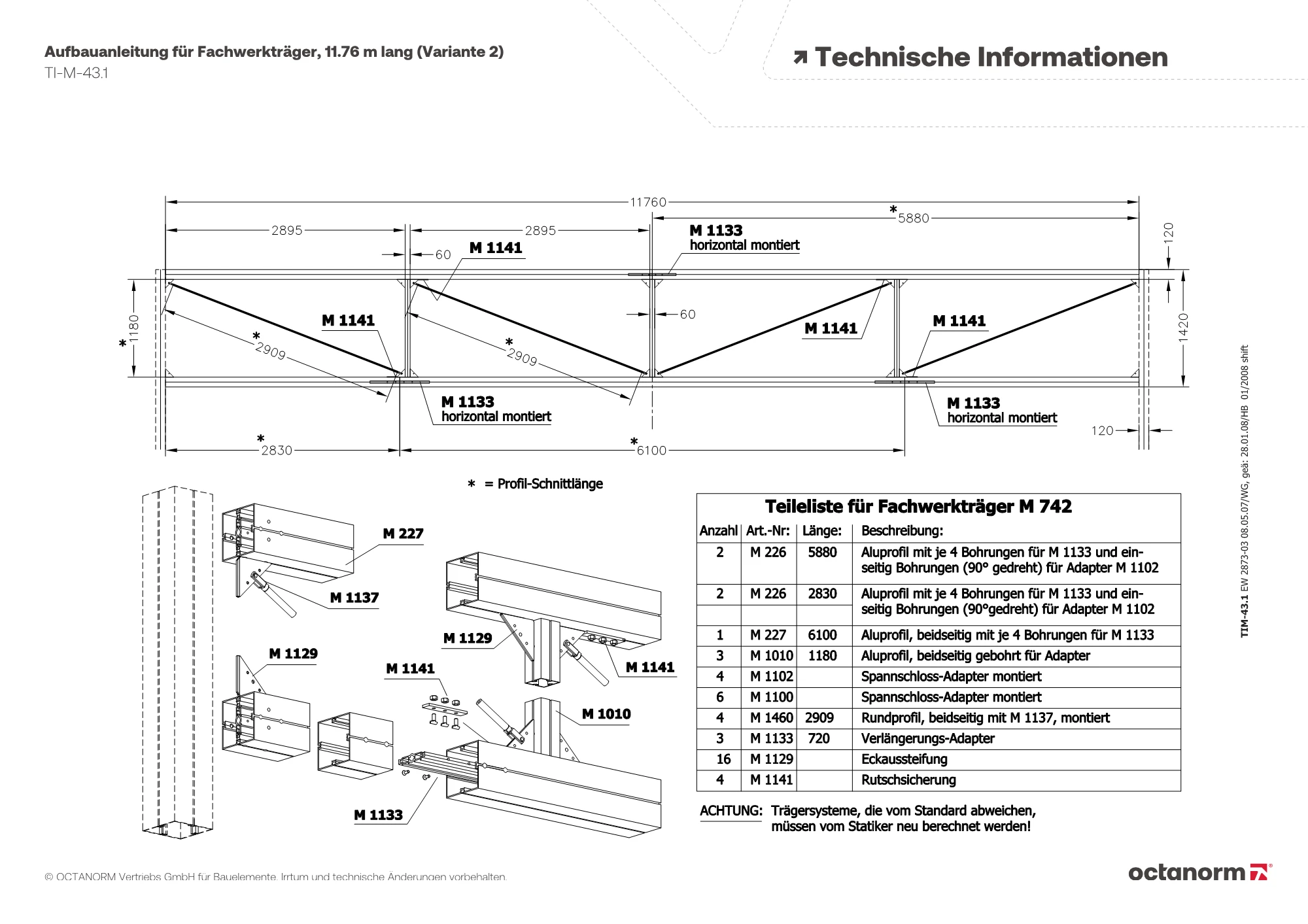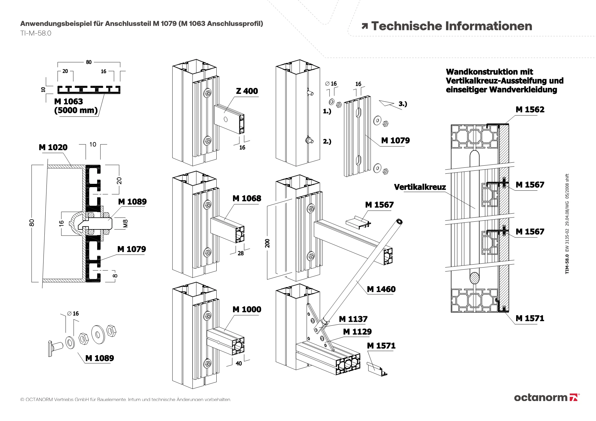 für Systemnut 4,3 mm, mit 3 × Gewindestift M 1435/70 (M8) und 2 × Linsen-Flanschkopfschraube M 1557/20 (M6)