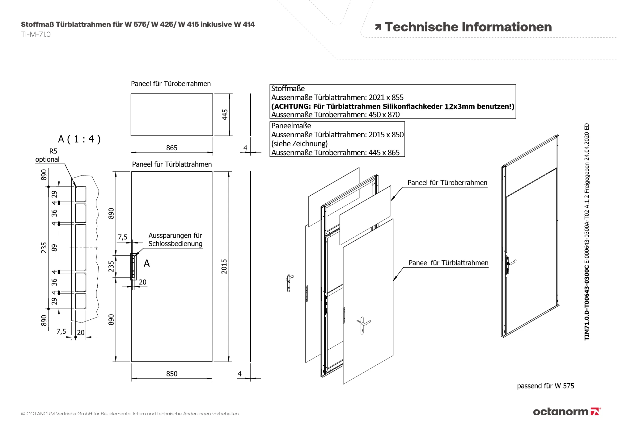 Achtung: Nur Silikonflachkeder 12 × 3 mm für Türblattrahmen benutzen!Technische Daten.