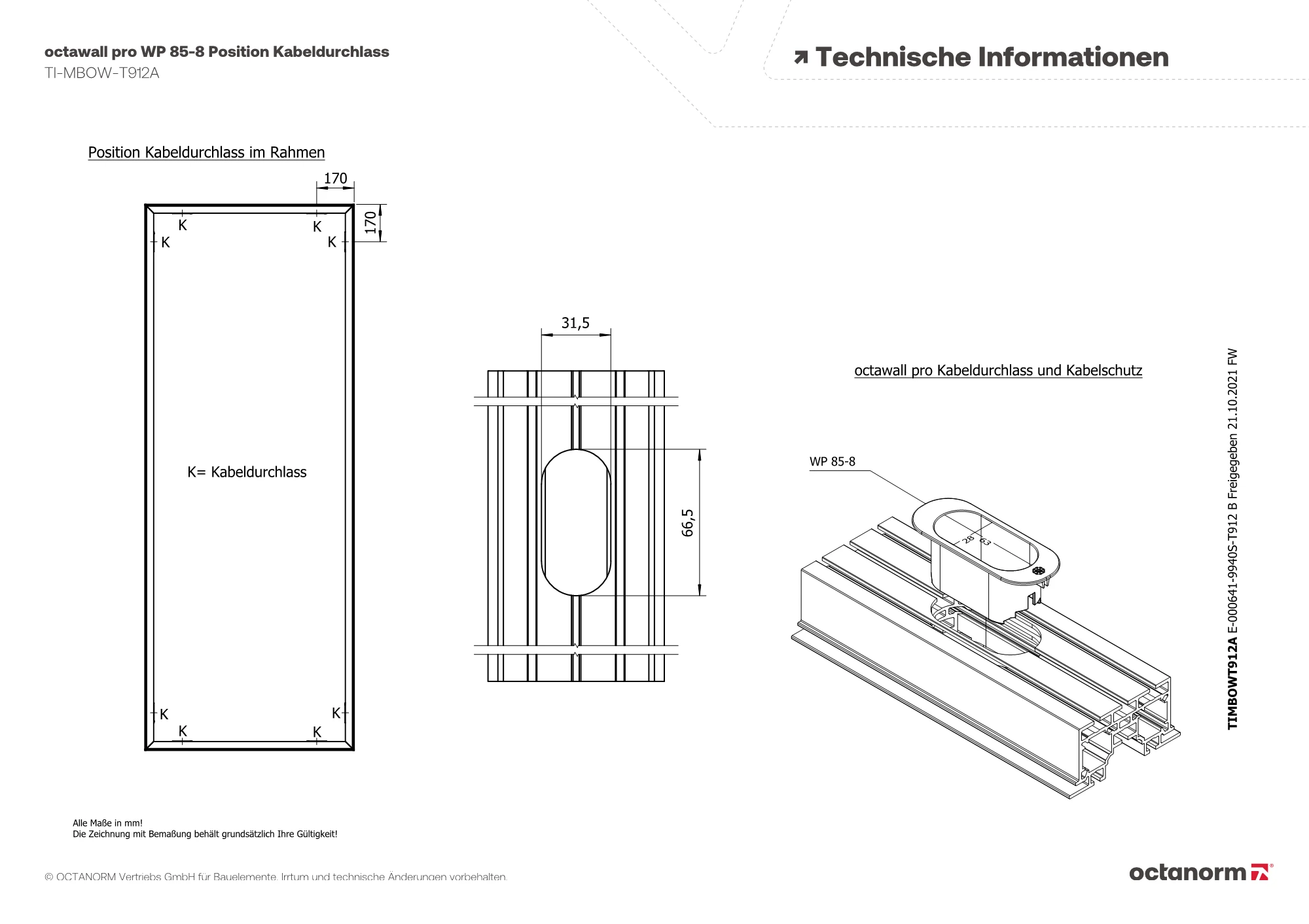 für Profil WP 860, für Kabel mit Stecker, zum Schutz der Kabel gegen Beschädigungen beim Verlegen durch das Rahmenprofil