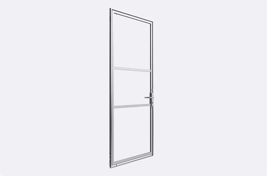 The universal door can be installed as either DIN left or DIN right. The door element can be integrated flush into the wall line, ensuring a seamless and harmonious overall appearance.