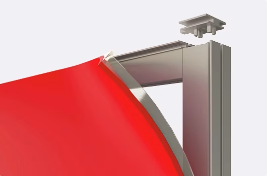 In addition, the corner connection has been optimized to allow for continuous fabric graphics across frames while also simplifying the installation of the adjustable foot.
