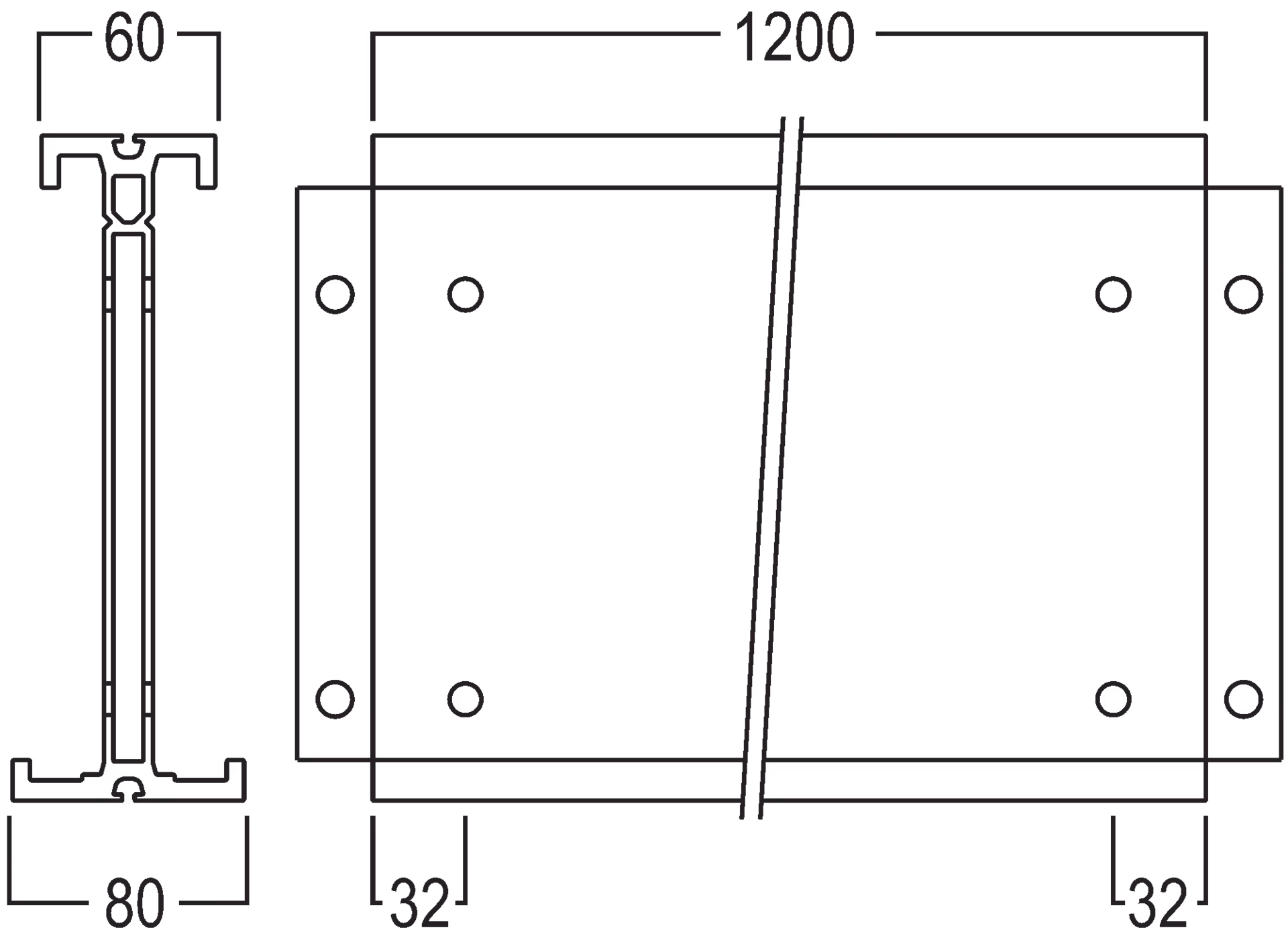 L 1200 × W 80 × H 230 mm