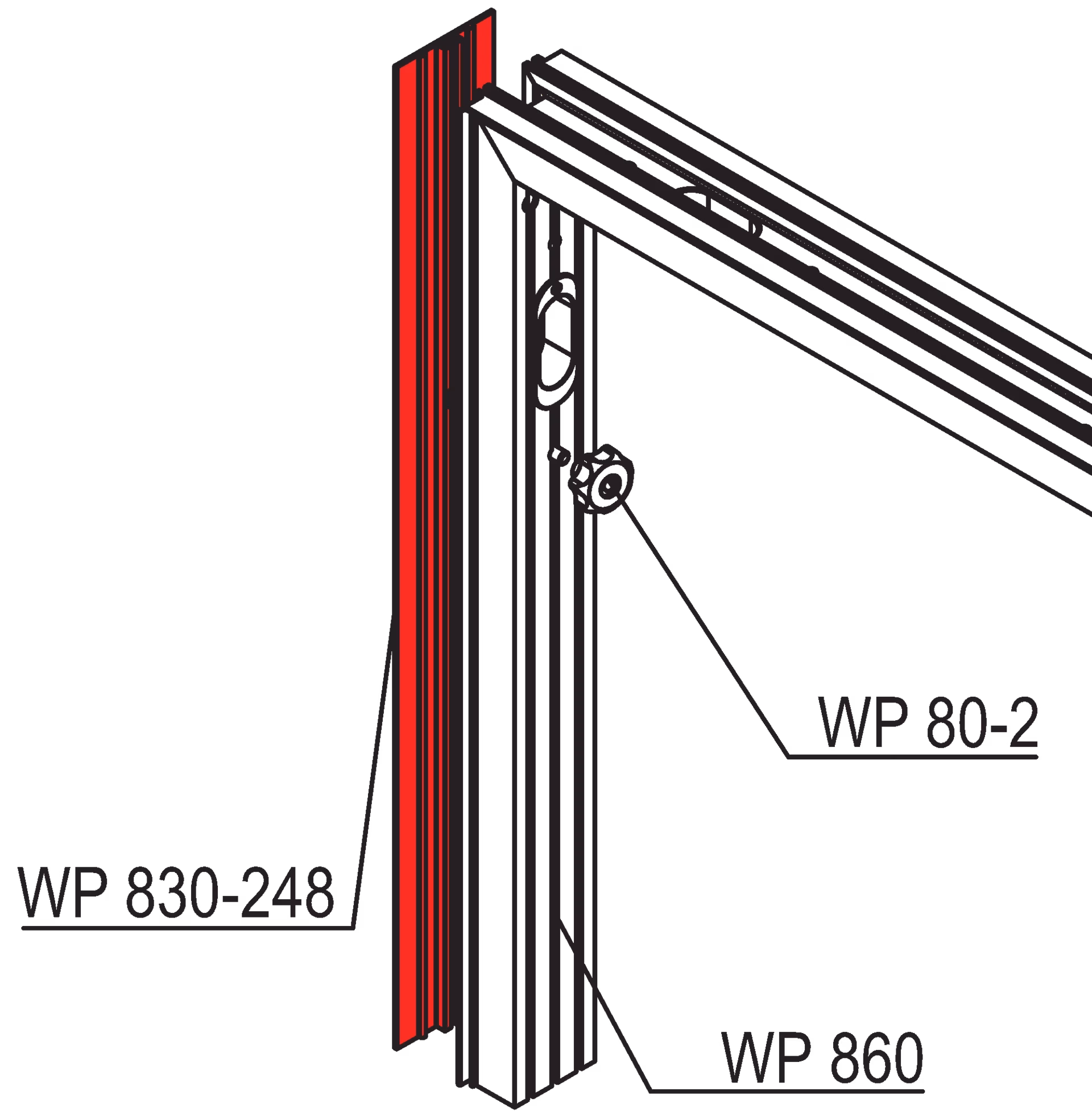 to cover frame extrusion WP 860 of frames with 2480 mm height, fastening with WP 80-2 hammer-head screw