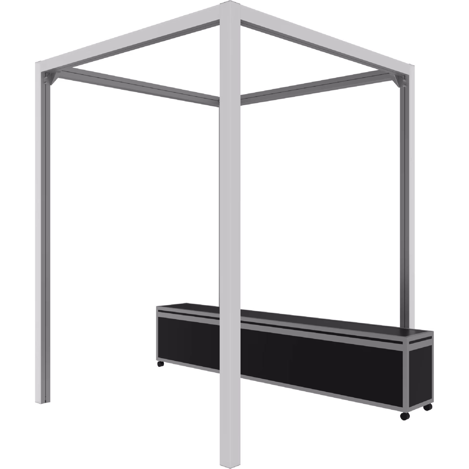 made of OCTAlux, set consisting of: 4 × upright L 1020-3000B, 4 × beam L 1022-2840B, 4 × corner reinforcement, 3-part L 15, 1 × RGB remote control L 185-2, 1 × power cable L 204, 1 × mounting tool E 13, 1 × transport box L 530, 54 × foam pad L 898