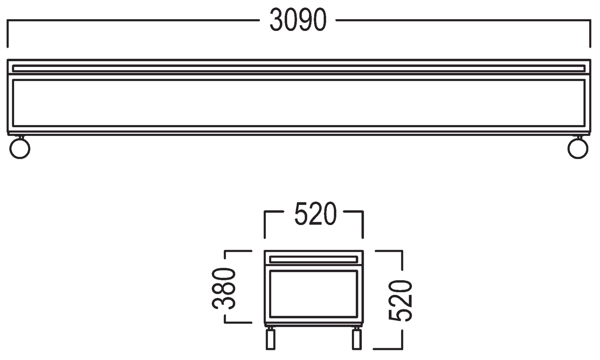 L 3090 × W 520 × H 520 mm