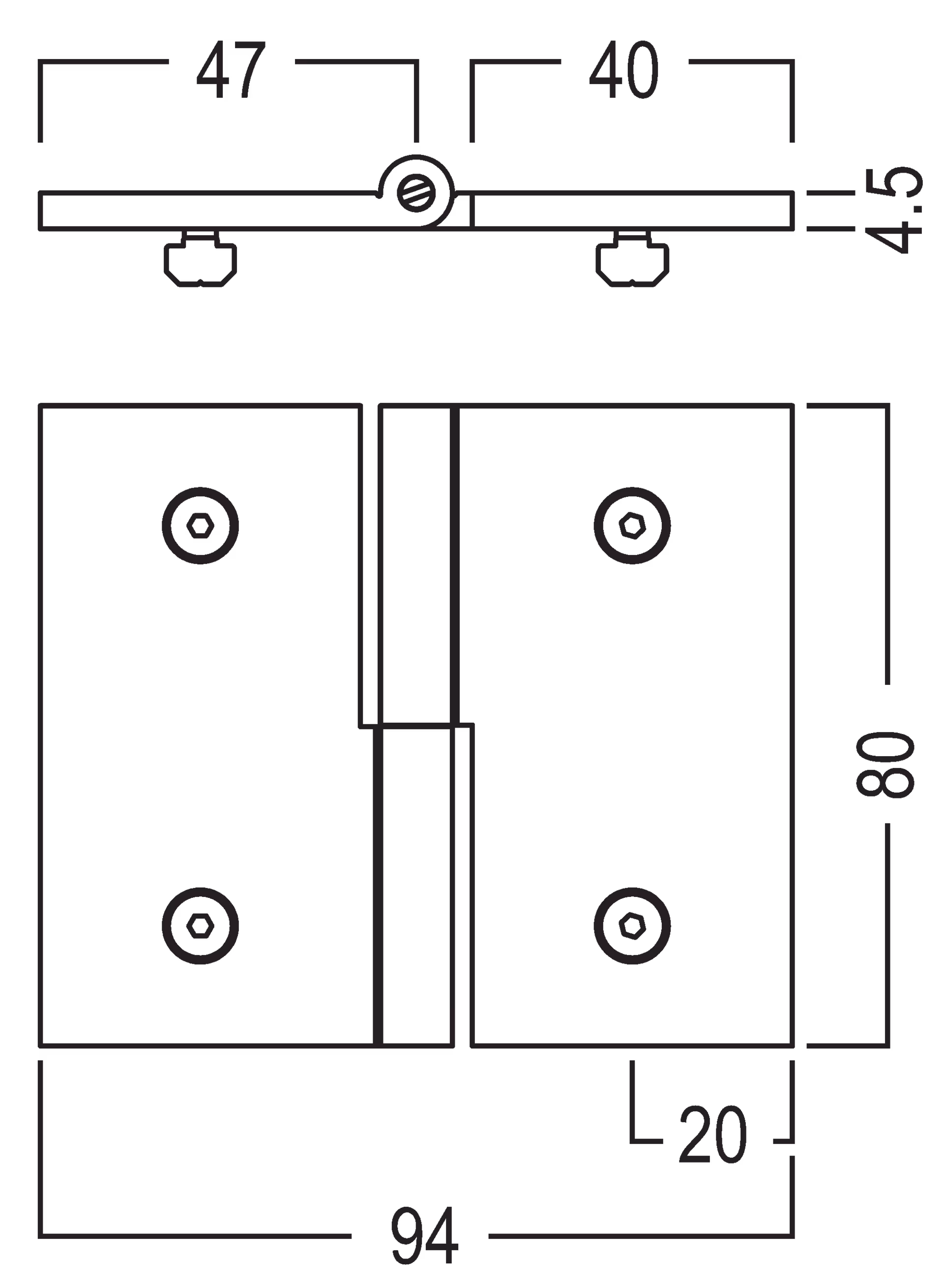 right hand version, can be unhinged, for mounting to system groove 4.3 mm, incl. 4 × countersunk screw E 2720/20 (M4)