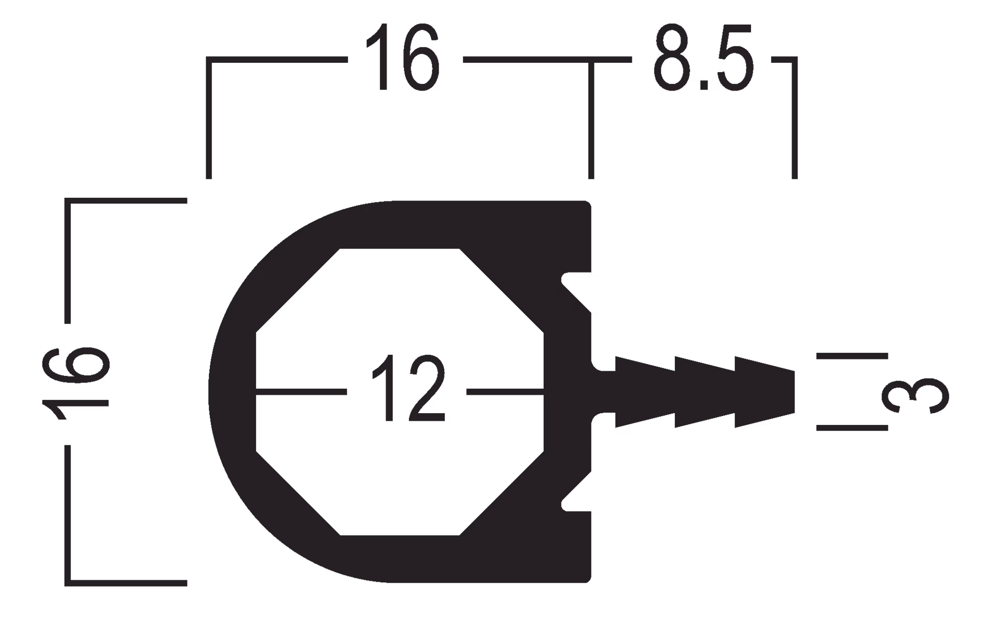 L 5000 × W 16 × H 16 mm