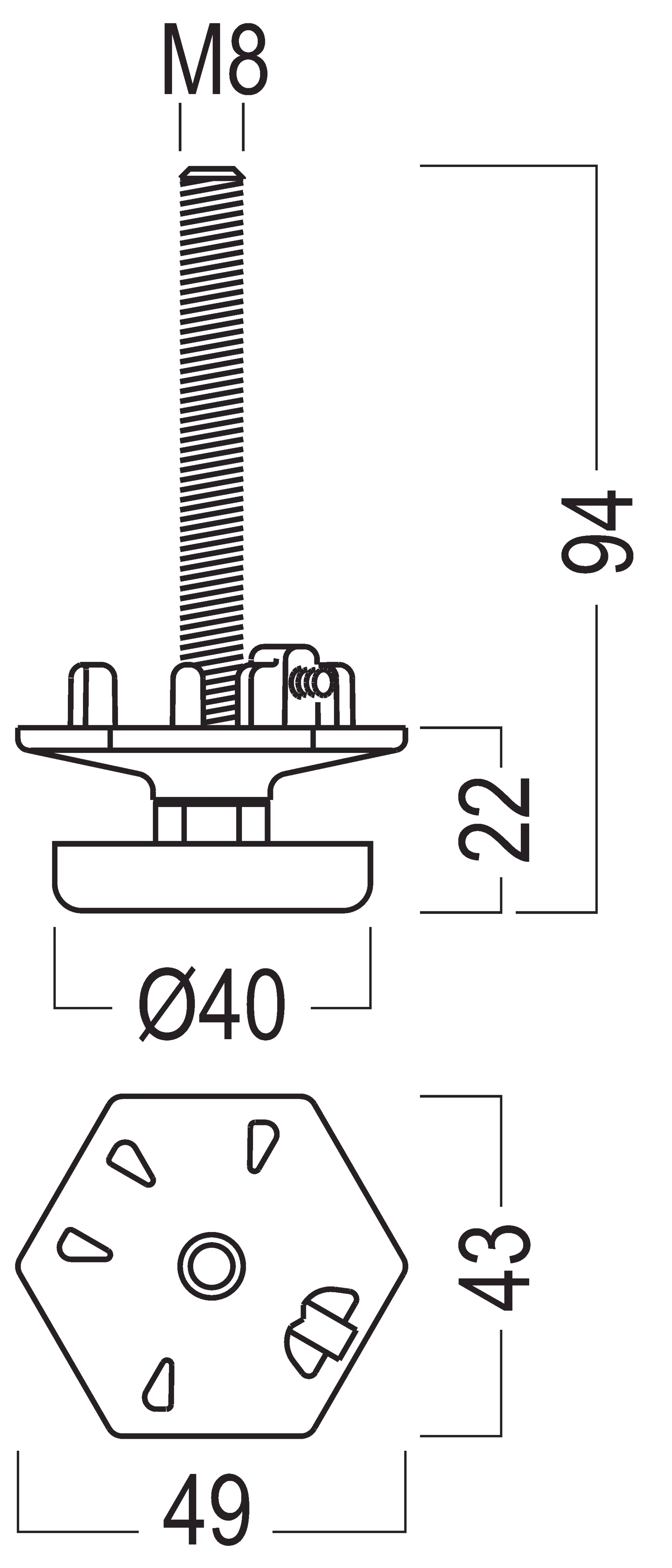 for upright extrusion S 500, thread M8, incl. 1 × set screw M 1036/20 (M4)