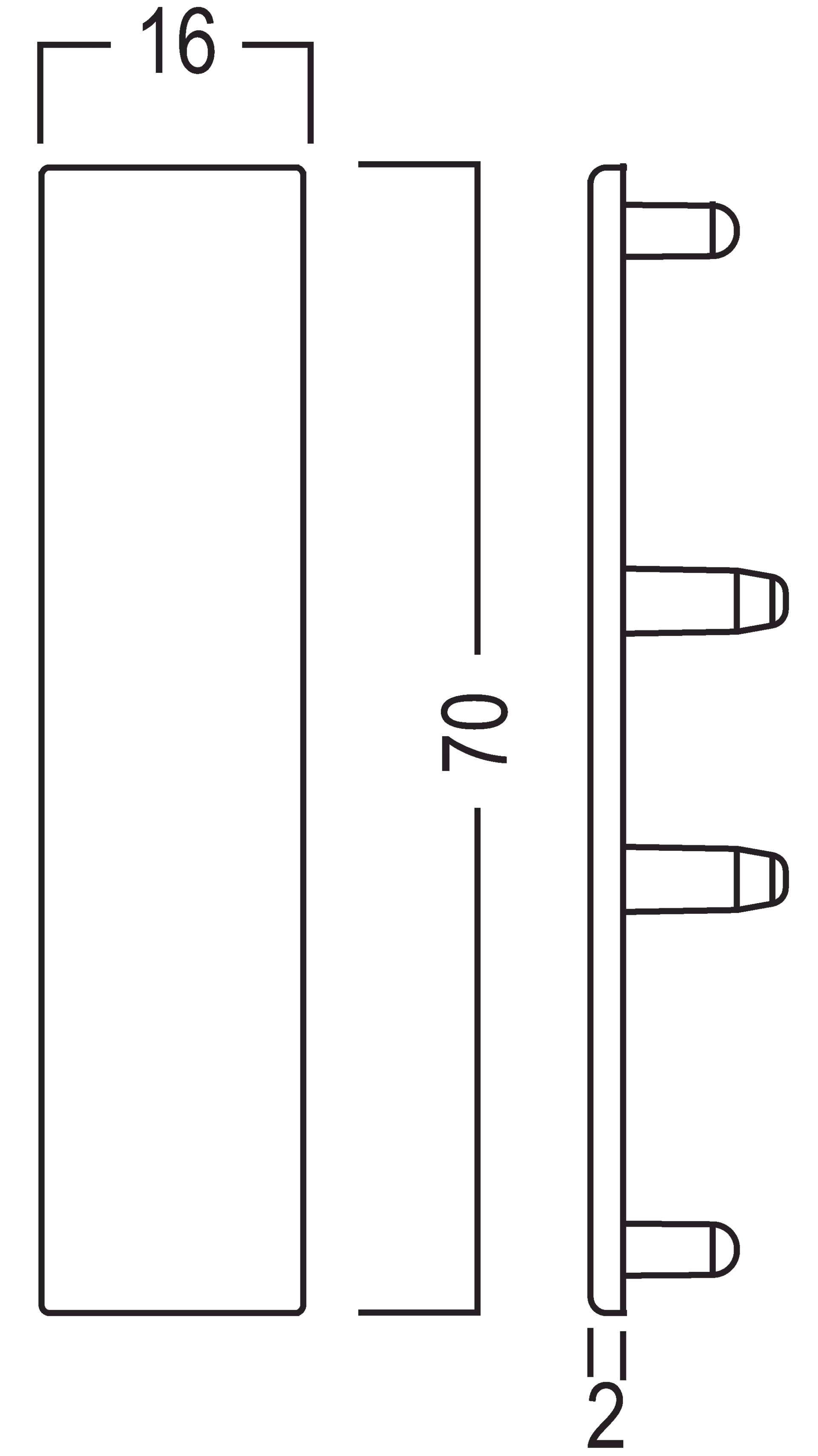 L 70 × W 16 × H 12 mm