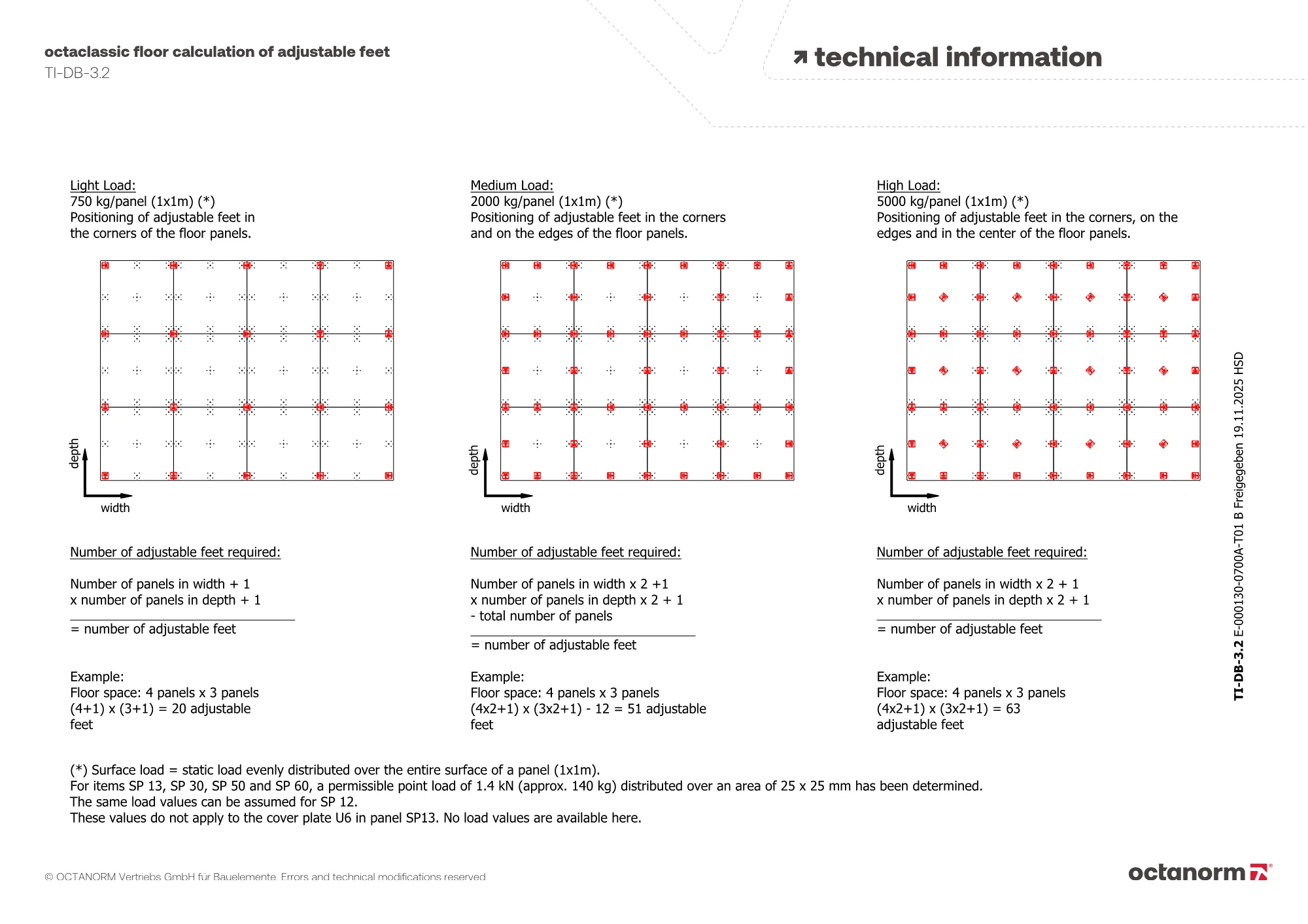 for higher load factor up to 9 adjustable feet can be usedTechnical Data.