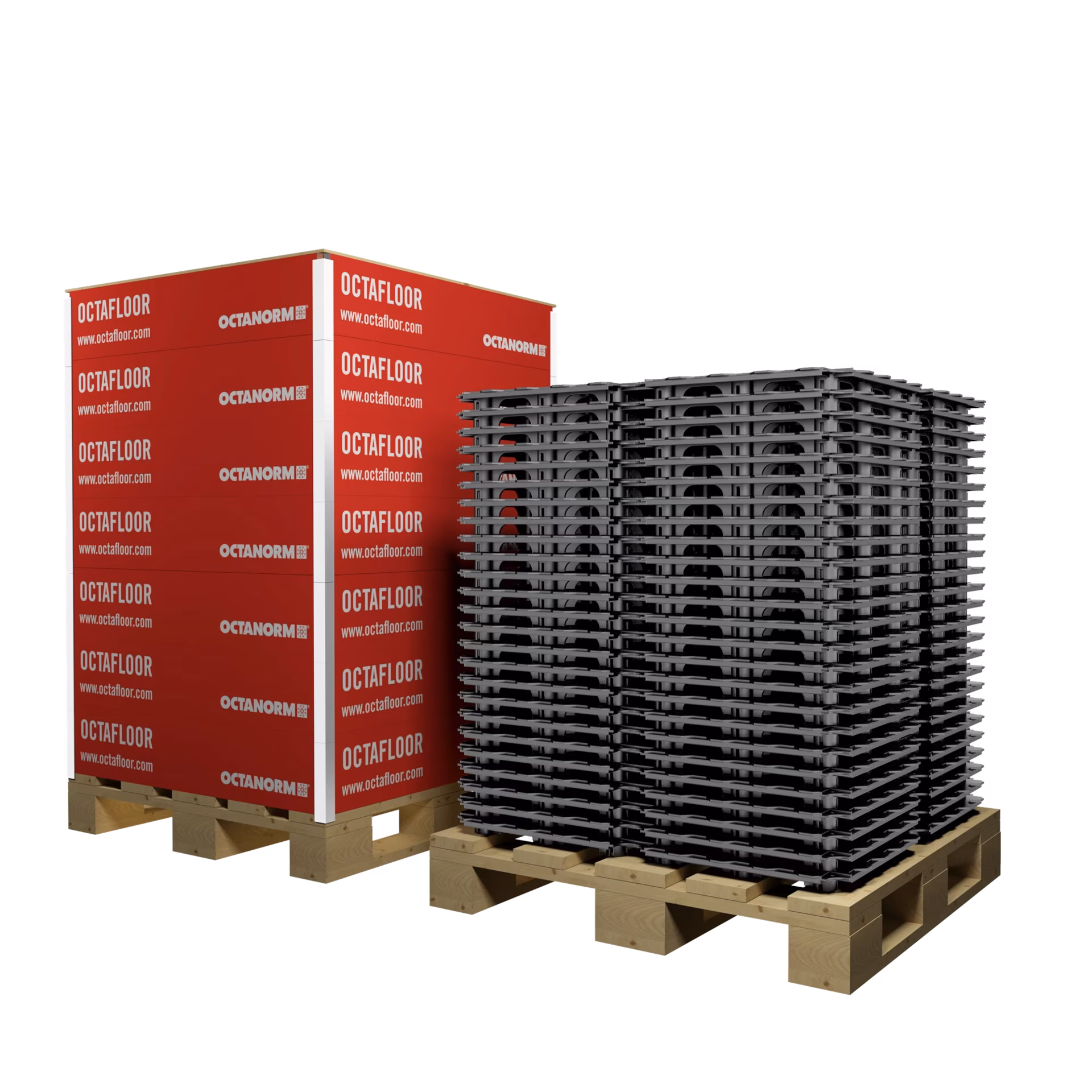 Set consisting of: 25 × base plate F 304 Cfl S1 (1 m²), 66 × cover plate F 106 Cfl S1 (89 × 89 × 19 mm), 36 × cover plate F 107 Cfl S1 (89 × 44 × 19 mm), 1 x tool F 1 for cover plate, flame retardant Cfl-S1, Delivery in reusable permanent packaging: Pallet with pallet support frame
