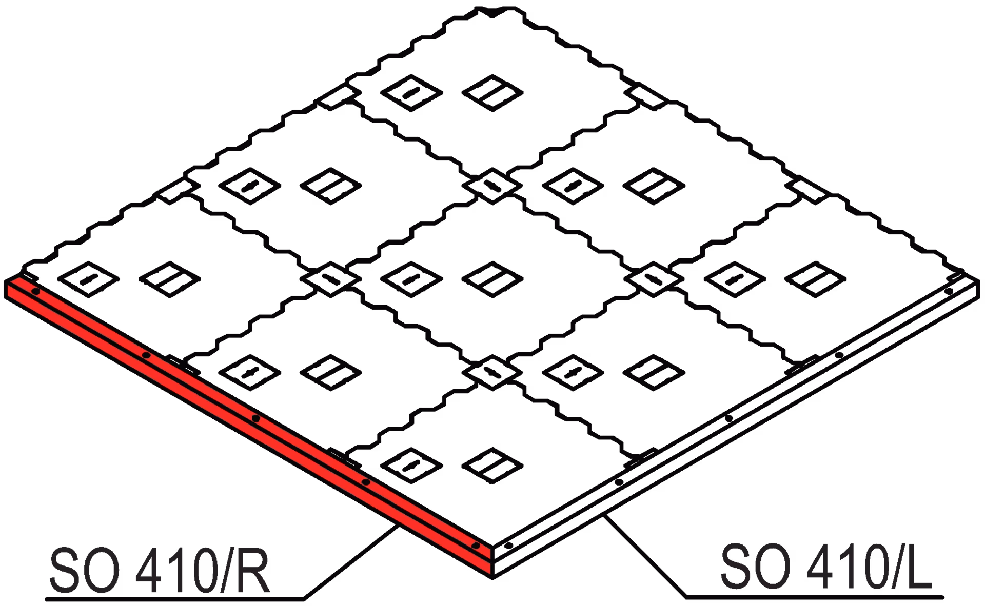 1 × skirting extrusion made of SO 400, to cover the edges of the floor panel F 304 Cfl S1, incl. 5 × countersunk drill for woodscrews 4 mm dia., 45° miter cut on the right side