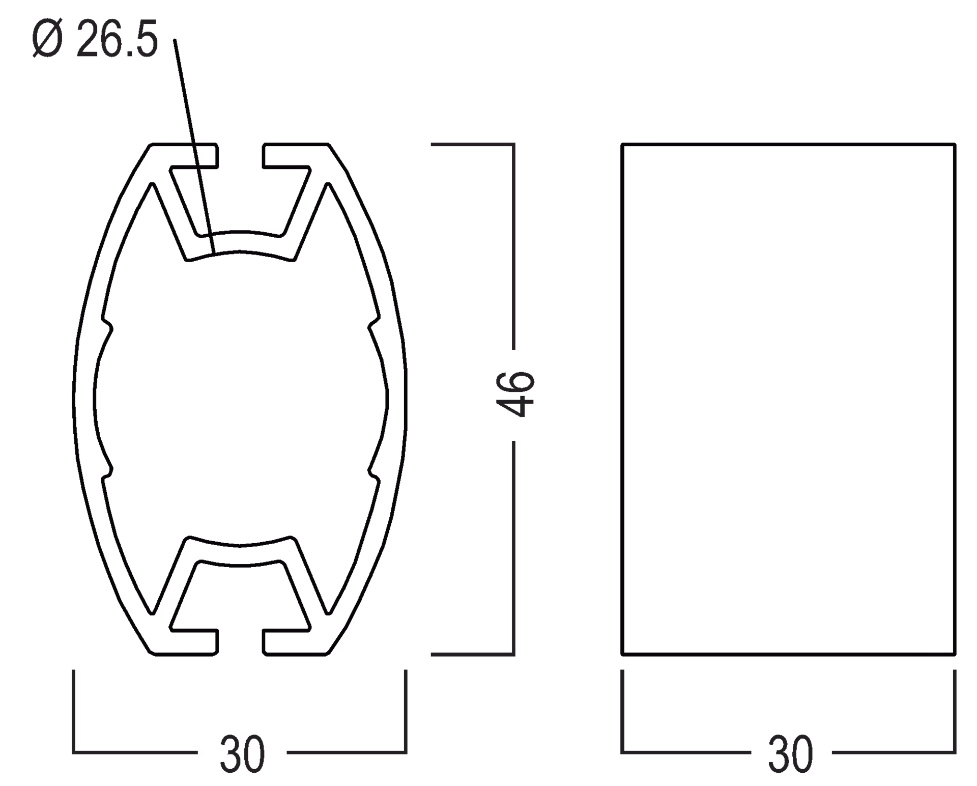 L 30 × W 46 × H 30 mm