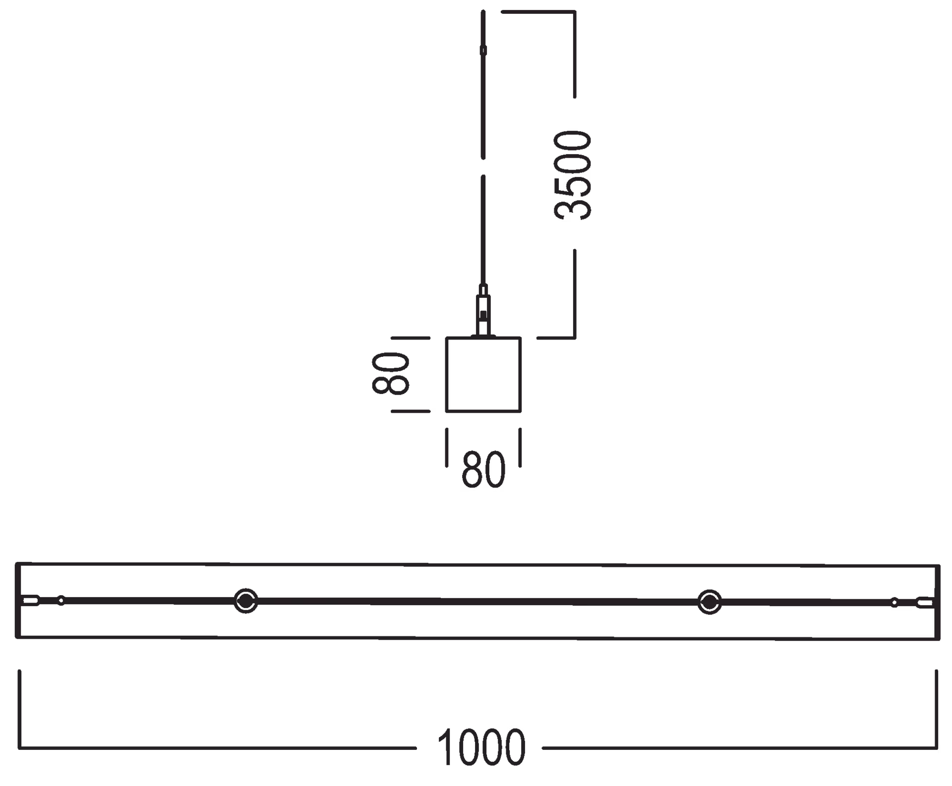 L 1000 × W 80 × H 80 mm