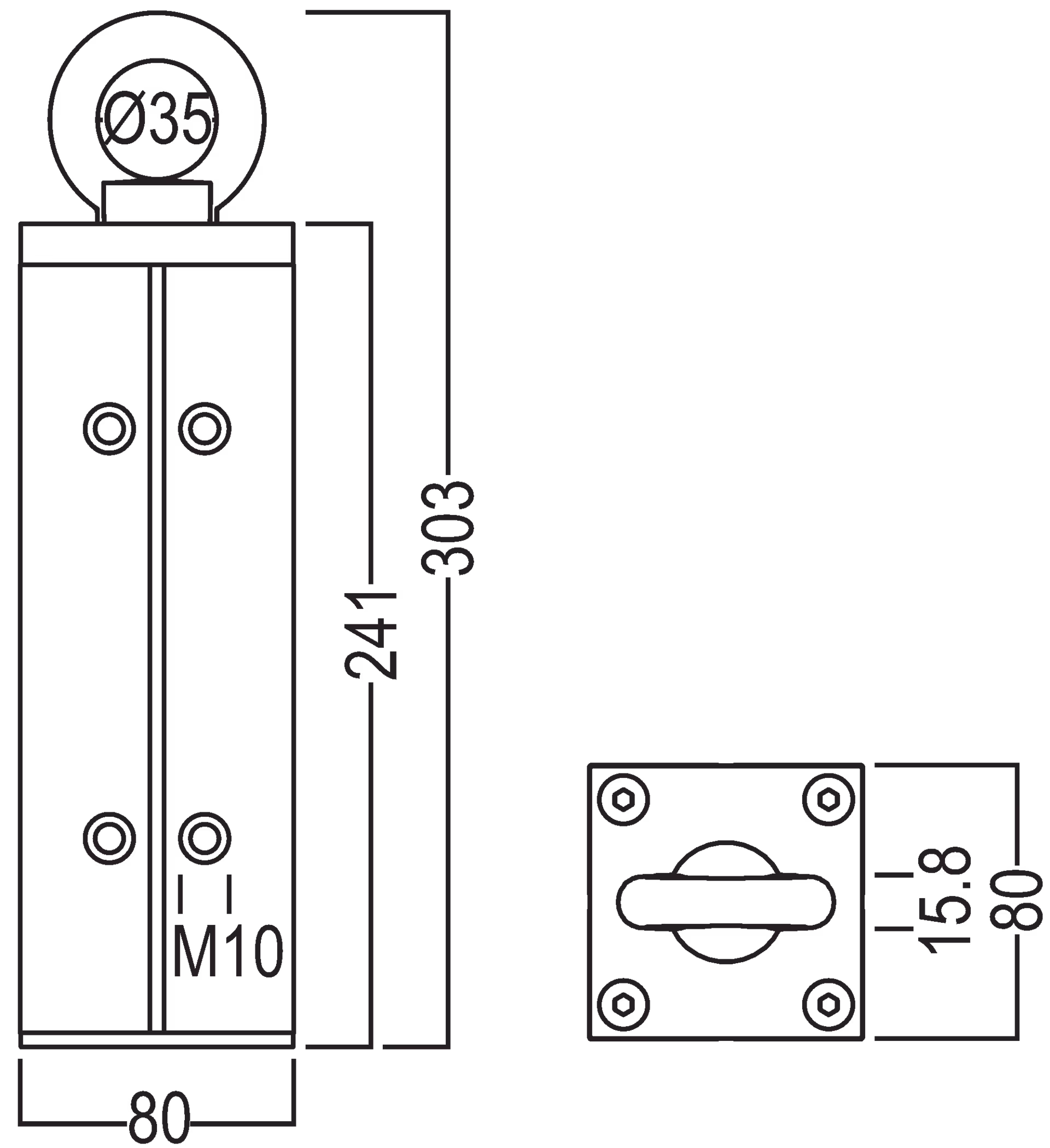to mount adaptor R 260 in case of suspension, incl. eyelet 35 mm dia., with 16 × thread M10