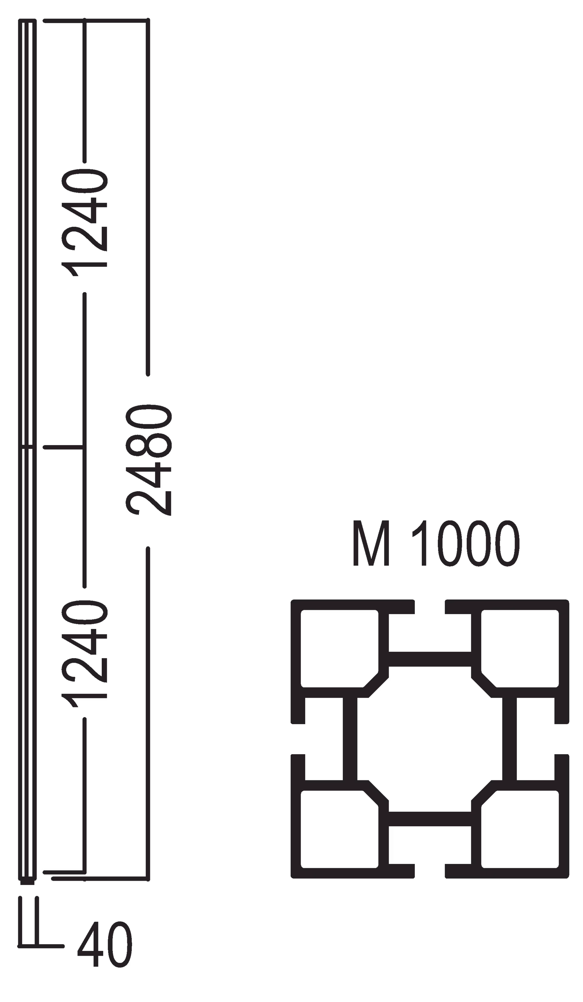 L 40 × W 40 × H 2500 mm