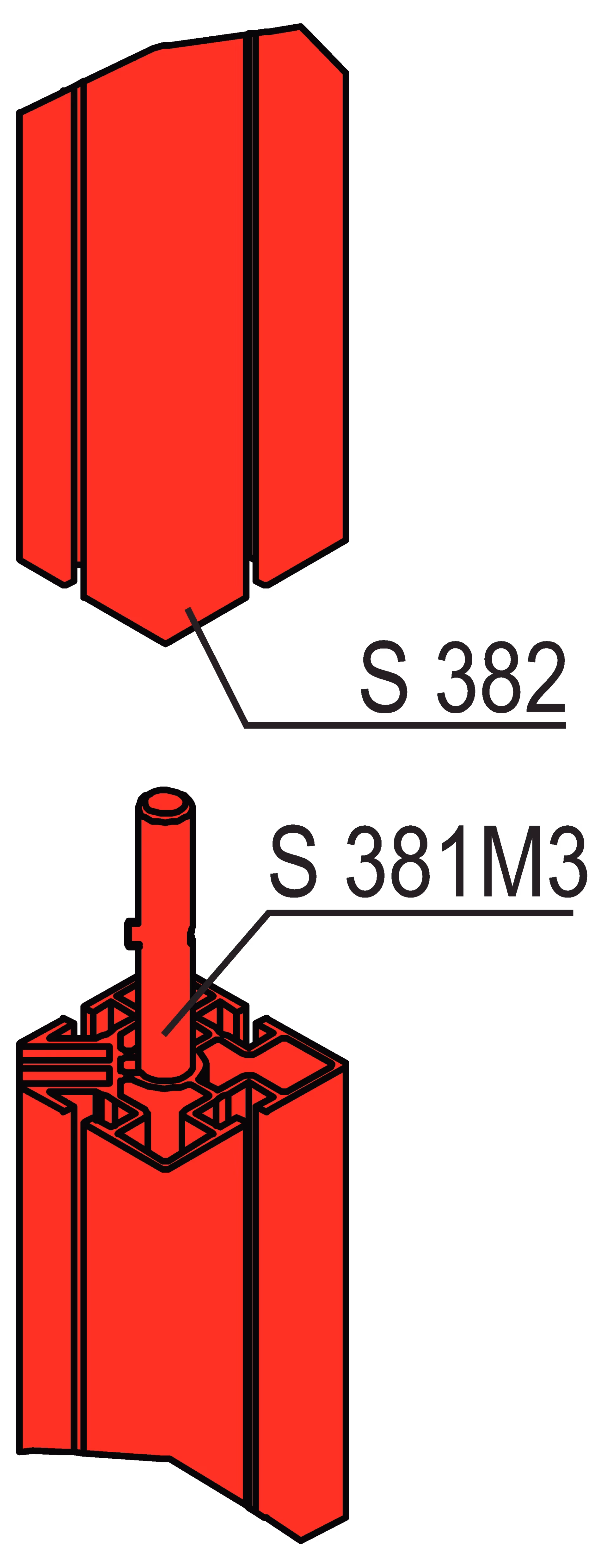 1 x upright of 40 mm corner upright extrusion S 382, toolless, separated with longitudinal connector S381M3 , fabric can be mounted over the profile onto the edge, incl. 2 × end cap S 383 and 1 × adjustable foot W 913/1
