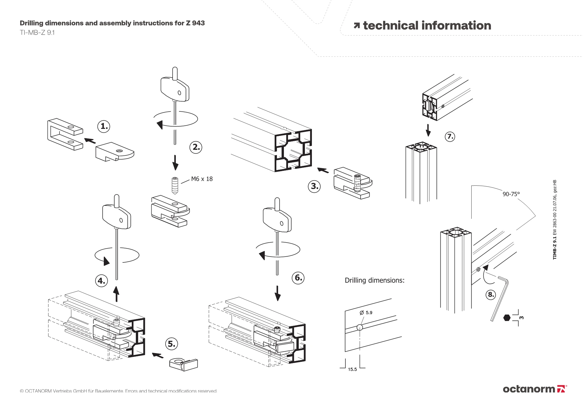 for all extrusions with lock chamber 21 × 12 mm, variable in angle, max. 15°