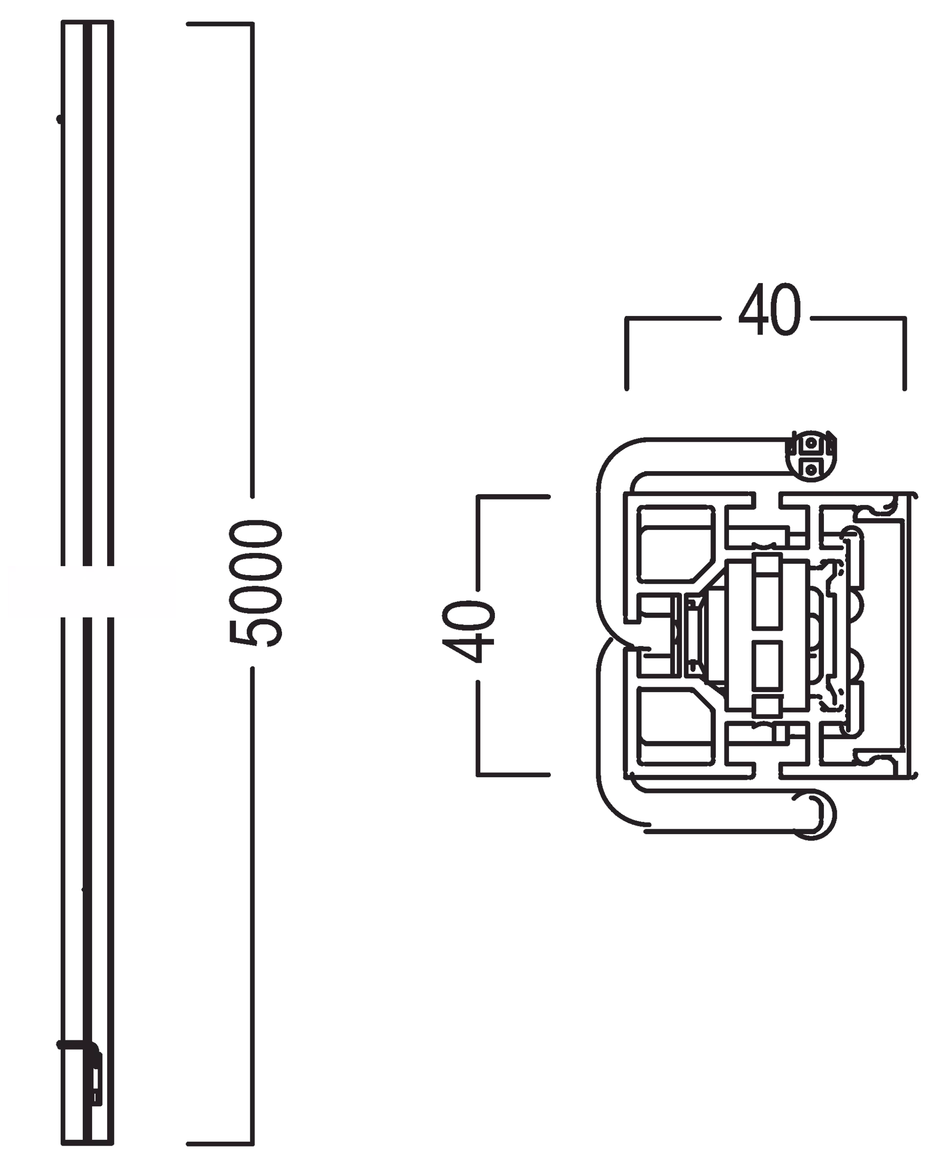 L 2000 × W 40 × H 40 mm