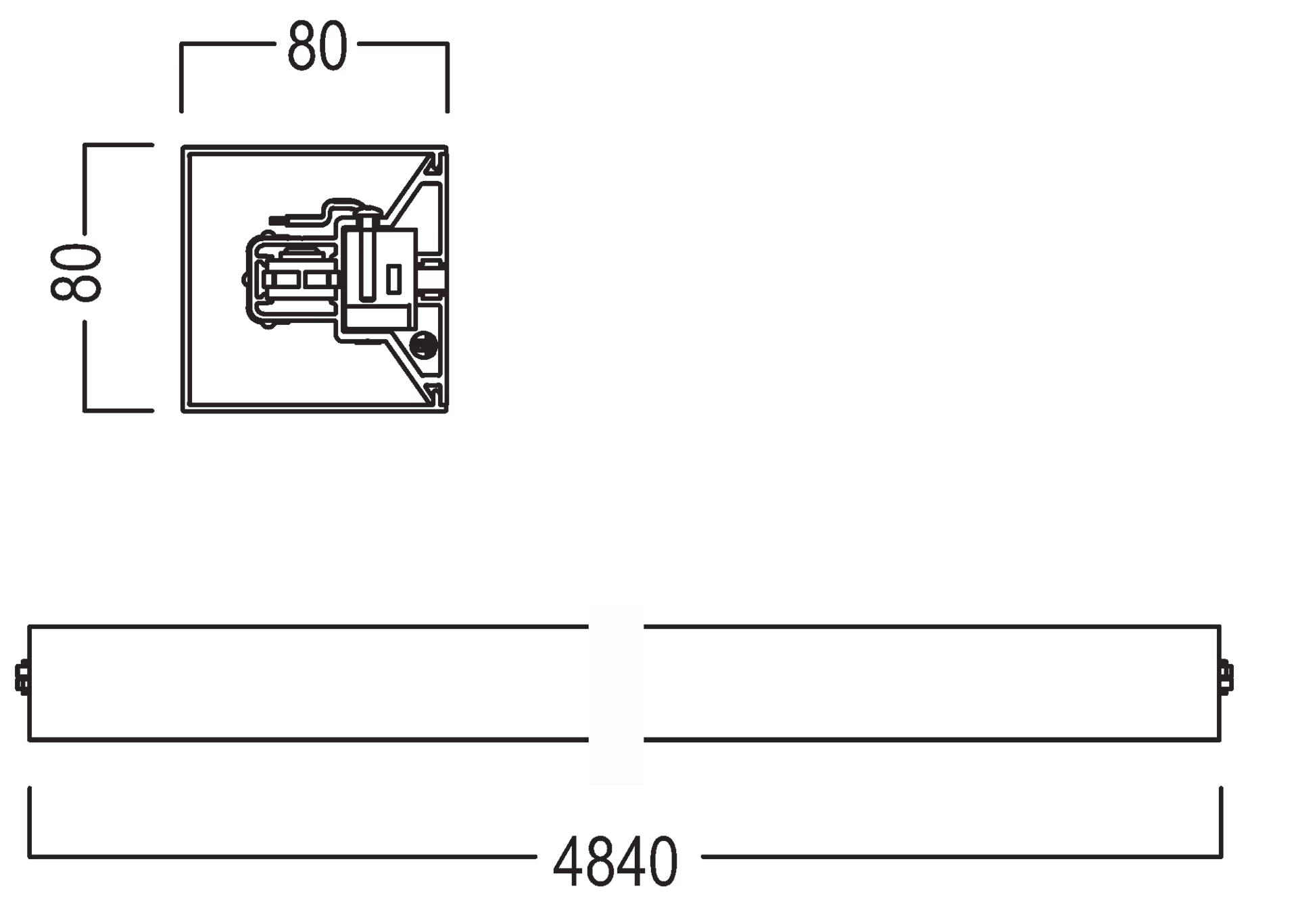 L 2840 × W 80 × H 80 mm