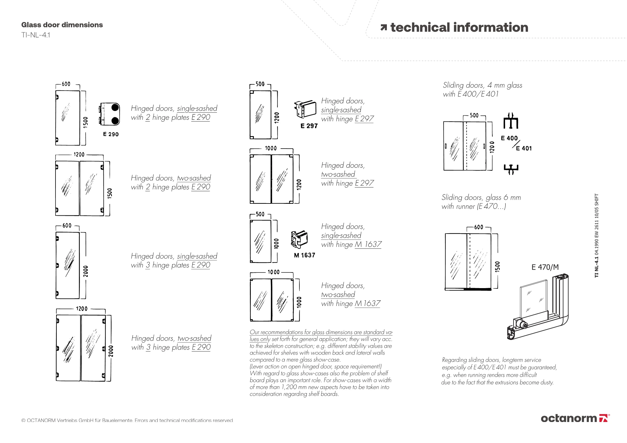 for hinged glass and wooden doors 5, 6, 8, 16, 19 mm, incl. mounting parts and distance washers