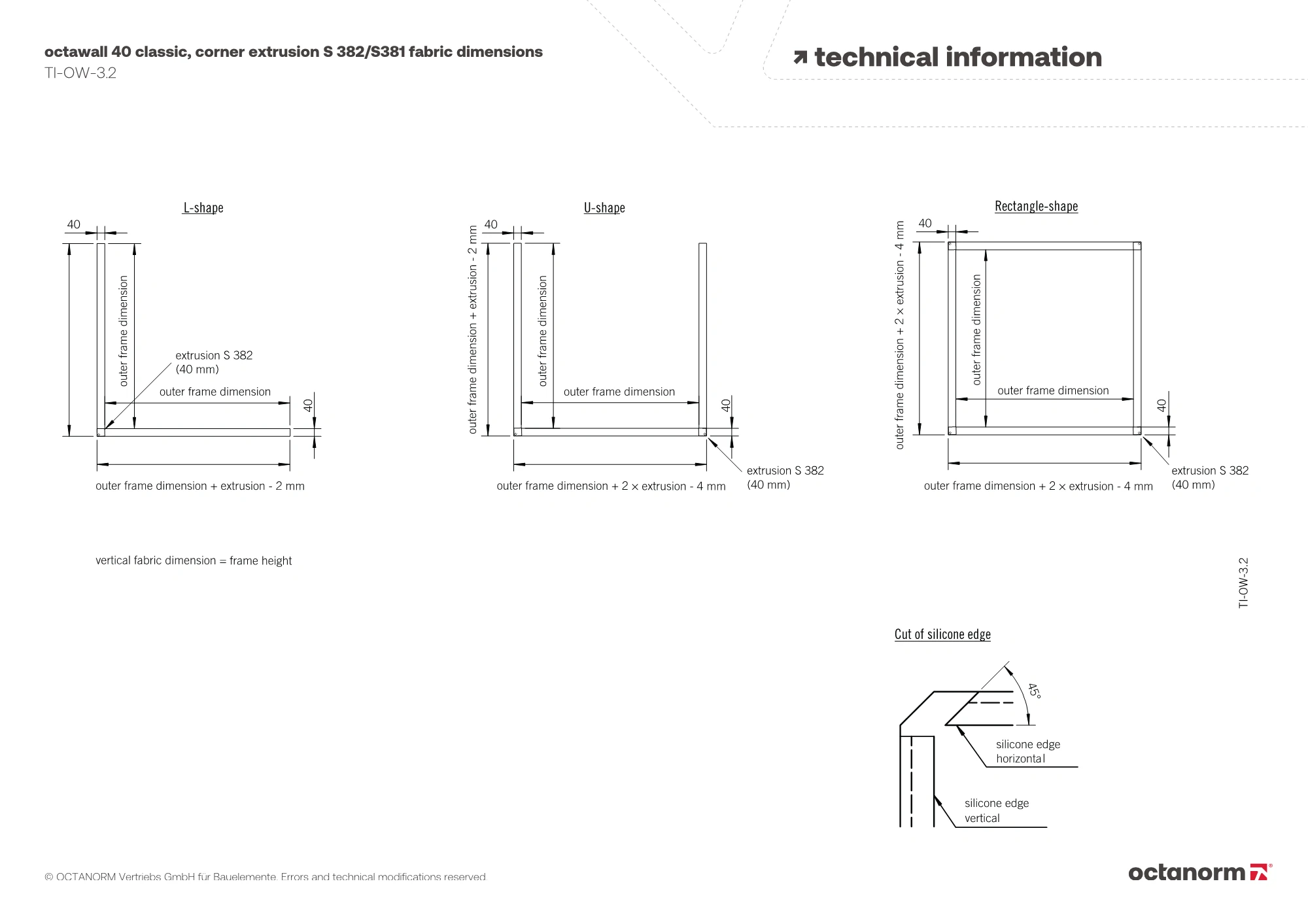 90°, for connection of octawall 40 frames, fabric can be mounted over the extrusion right to the edge