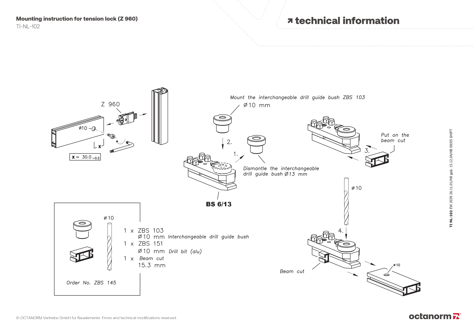 for drilling jig BS 6 / supplementary set ZBS 145, 10 mm dia., as accessory in supplementary set ZBS 145, exchangeable