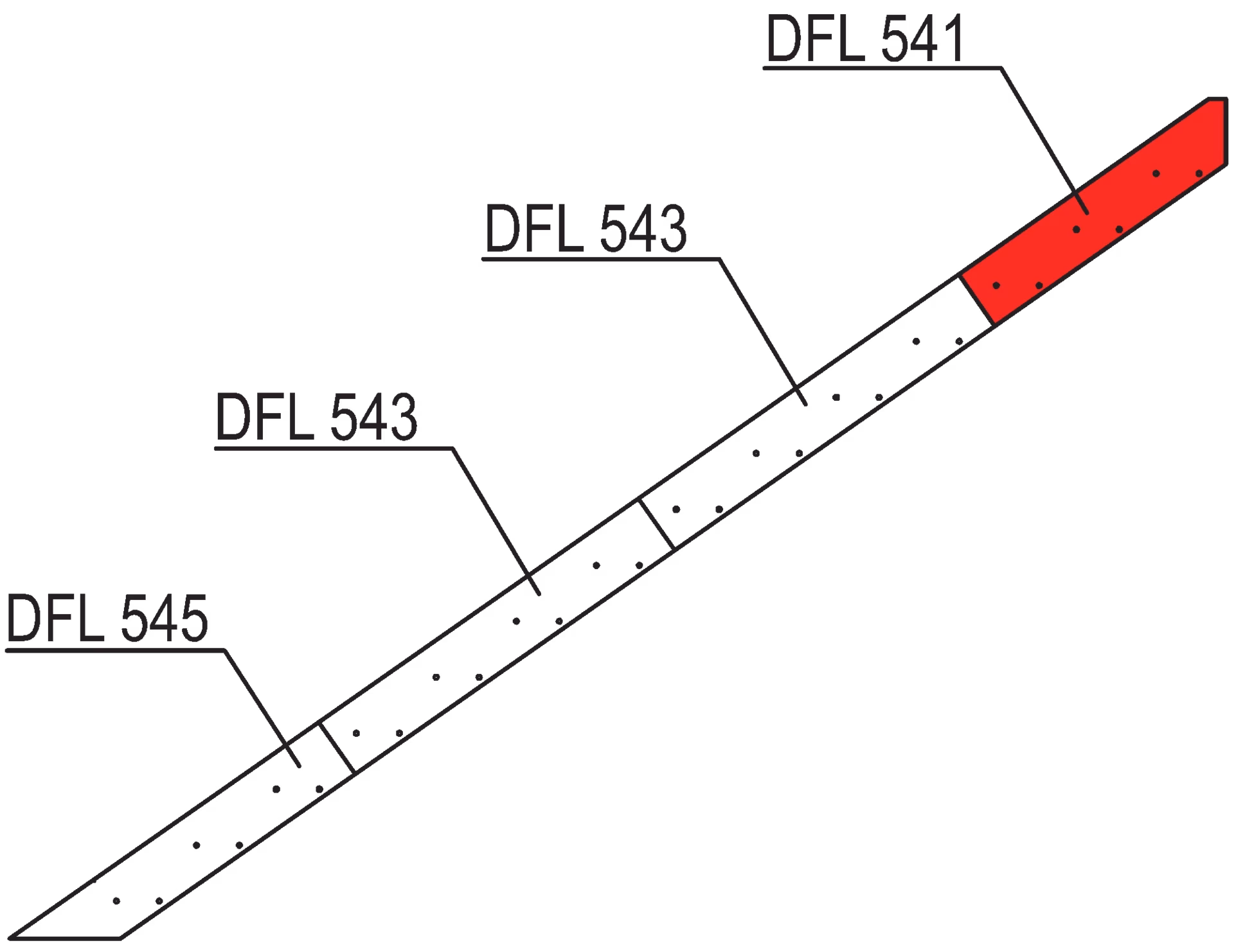 infill top, to insert into stair stringer DFL 502, consisting of: 1 × stair stringer infill DFL 541-L (top), 1 × stair stringer infill DFL 541-R (top), flame retardant B - s2 d0